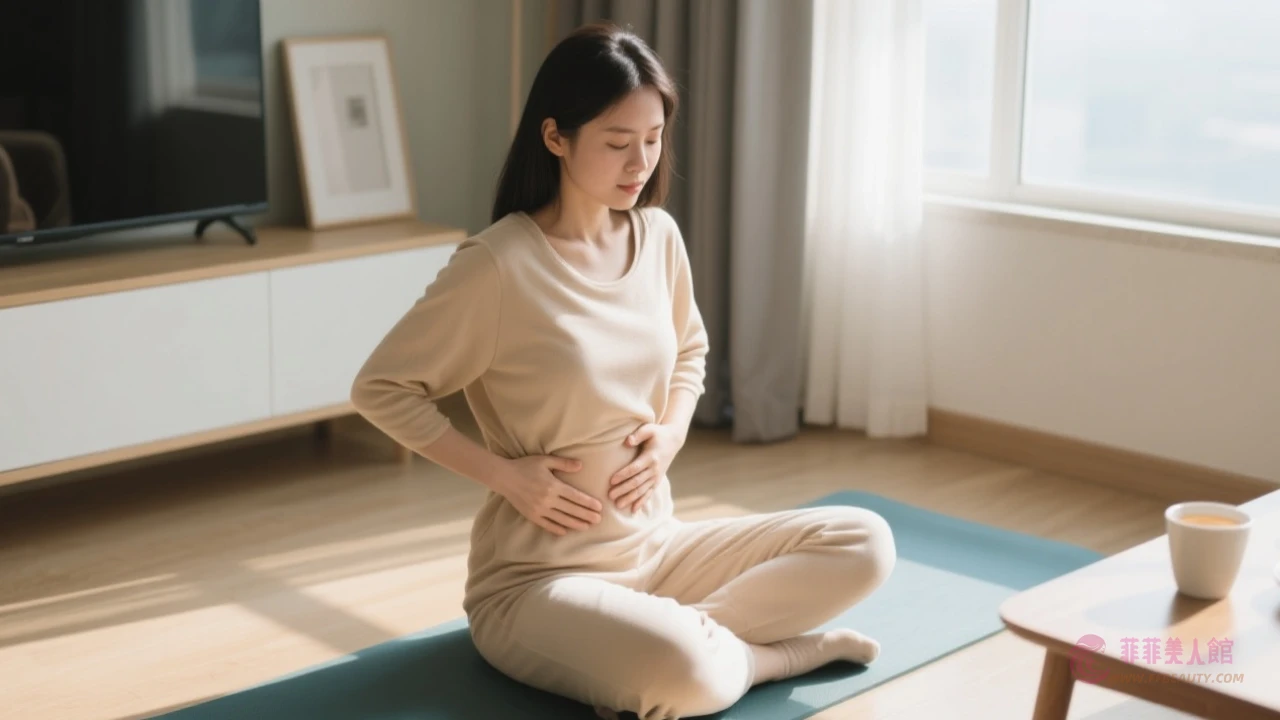 下腹部突出 ➜ 用「黃金揉腹法」雙掌交疊以肚臍為中心,順時鐘36圈促進腸道蠕動排毒,逆時鐘36圈抑制脂肪吸收,每晚睡前操作兩週見效