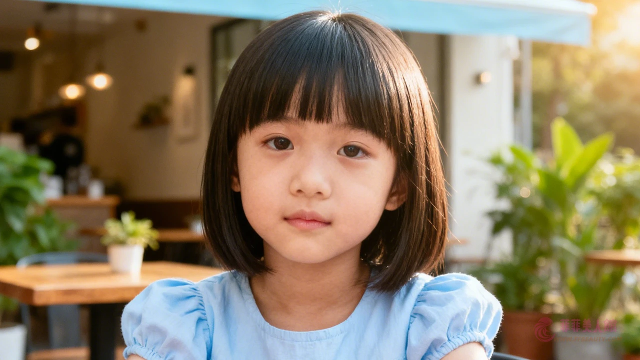 齊眉厚瀏海配上烏黑亮麗長直髮,搭配無辜大眼表情,減齡效果直接滿分!陽光下髮絲呈現自然光暈,直男看了都心動~[