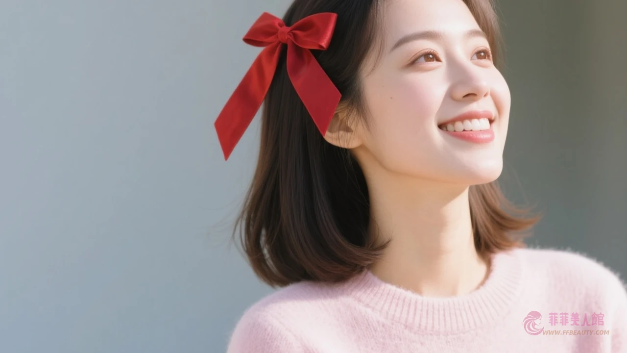 俏皮蝴蝶結梨花頭 厚重齊眉瀏海完美修飾臉型線條,搭配紅色蝴蝶結髮飾點綴,整體造型瞬間增添甜美俏皮感!