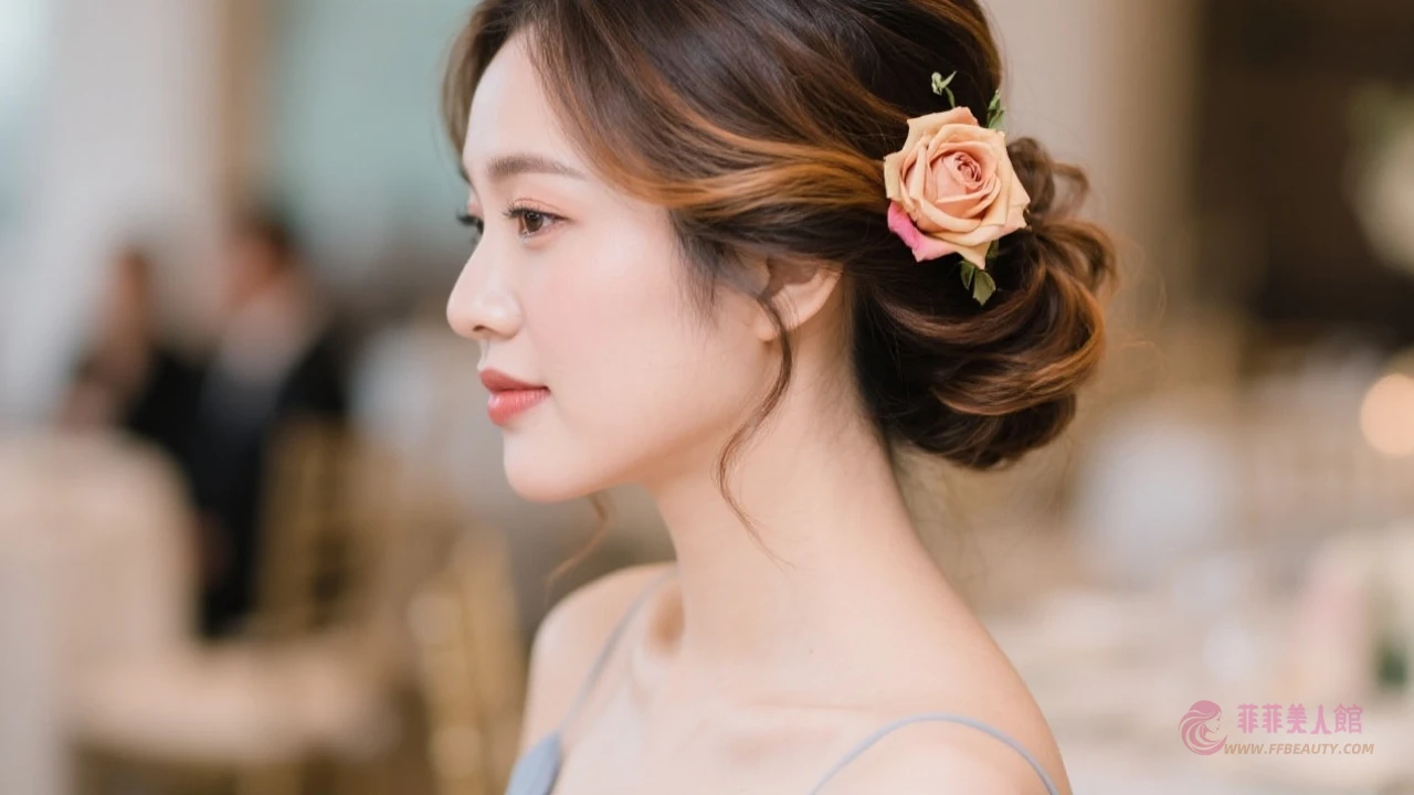 特別在髮根處做出空氣感弧度,最後用單朵永生花飾點綴側邊,這種居家感的小優雅最讓新郎倌的單身兄弟眼睛一亮!