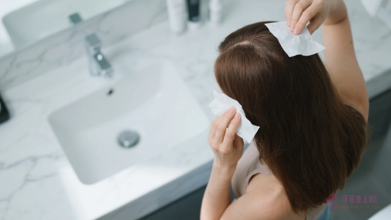 ▍自我檢測3秒看懂頭皮屬性 撕張廚房紙巾輕按頭頂: ◍ 油光明顯→油性頭皮 ◍ 微泛汗漬痕→中性頭皮 ◍ 完全乾爽→乾性頭皮 特別注意!若髮根油膩但髮尾毛躁,則屬混合型頭皮。