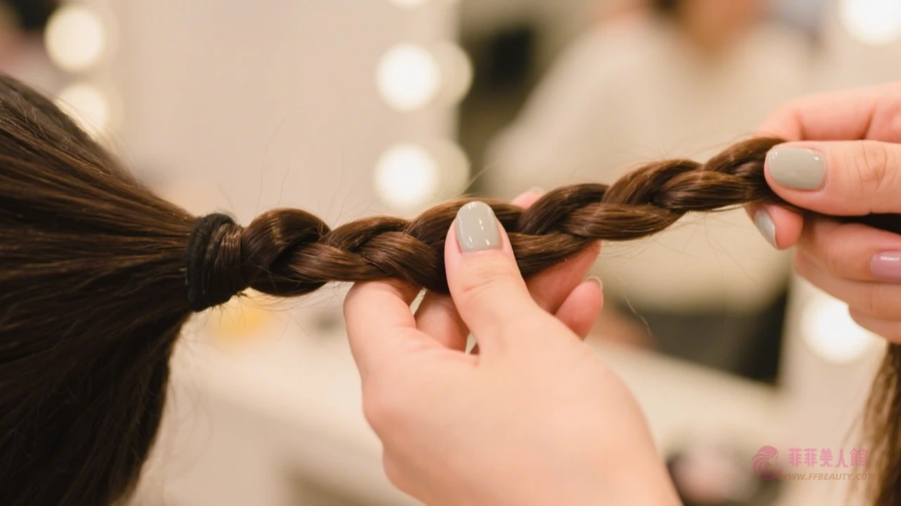步驟二:用手指輕輕將編好的髮辮拉鬆,製造自然的蓬鬆感。
