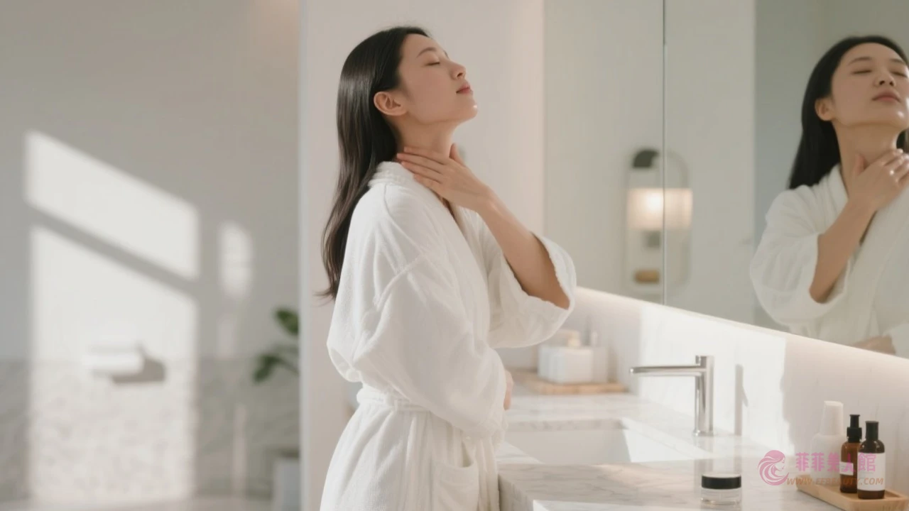 將殘留乳霜帶到頸部,左右手交替輕拍頸側各10下,同時保養容易出現頸紋的部位。