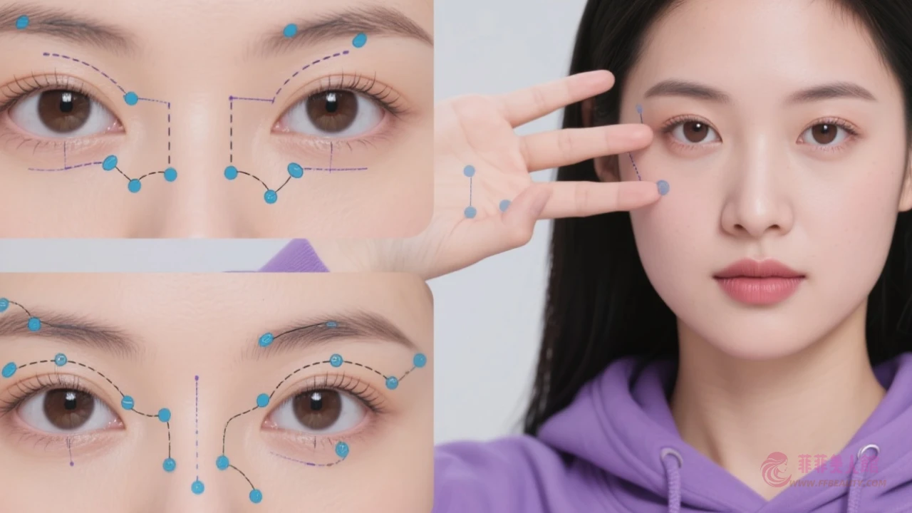 最後用滾珠頭「輕壓」眼周的攢竹穴、晴明穴和瞳子髎穴,每天按壓30秒能有效舒緩眼部疲勞、減輕浮腫感。