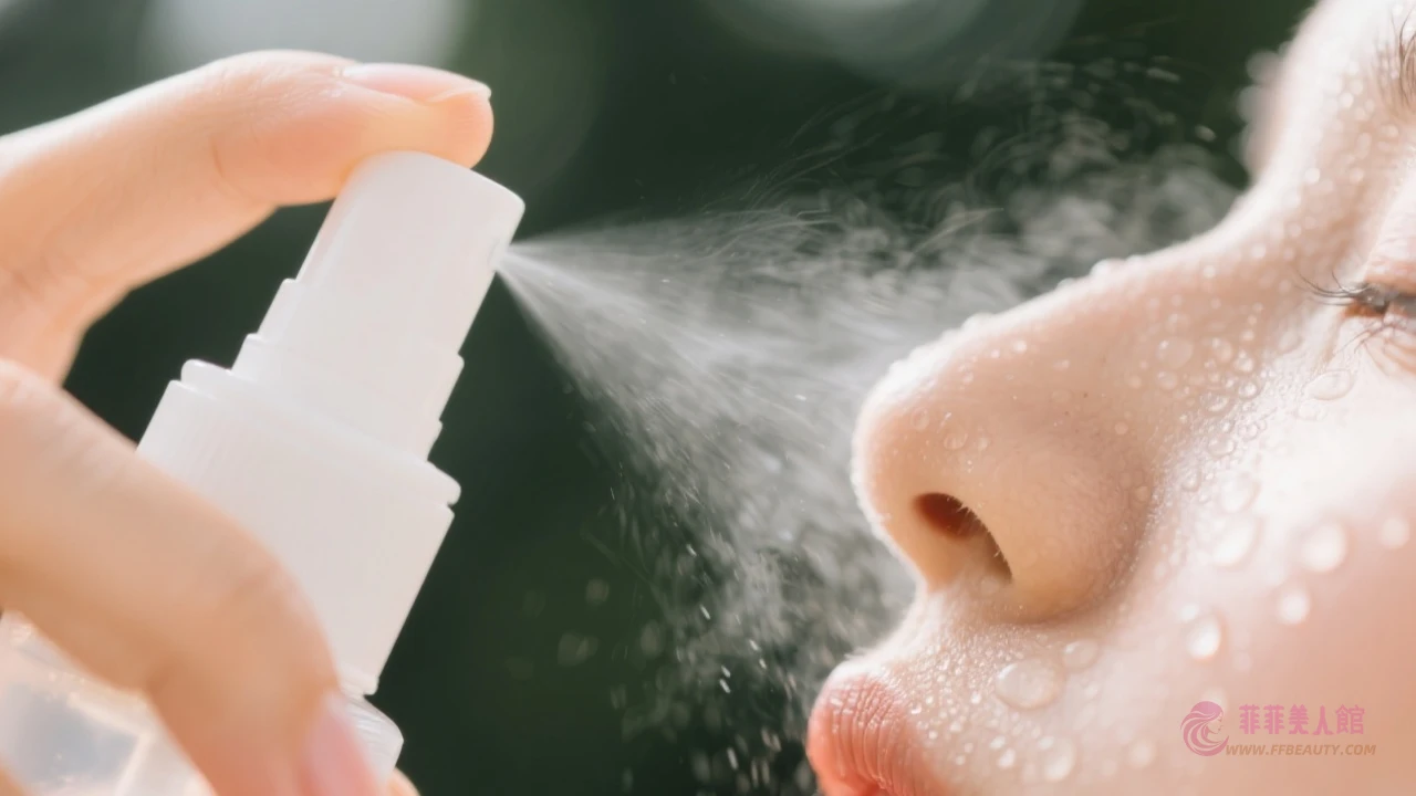 2. 立即鎖水噴霧 馬上噴灑含玻尿酸的保濕化妝水,建議油痘肌可以加1-2滴茶樹精油幫助消炎。記得用掌心按壓幫助吸收~
