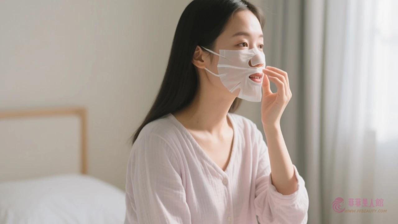 準備雞蛋清混合羊脛骨粉末調成糊狀,睡前厚敷全臉,隔天用洗米水輕柔沖洗。連續使用10天後,會發現肌膚明顯變得細緻透亮,這個方法特別適合想要快速改善暗沉的女孩們。 [蘋果光打燈下的台灣女生敷白色面膜自拍照,淺米色臥室背景,自然日光風格]
