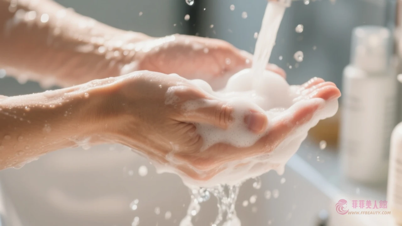 溫水搭配「泡沫慕絲型」洗面乳才能打開毛孔深層清潔,記得選擇含玻尿酸成分的款式,邊洗邊補水才不會越洗越乾燥~